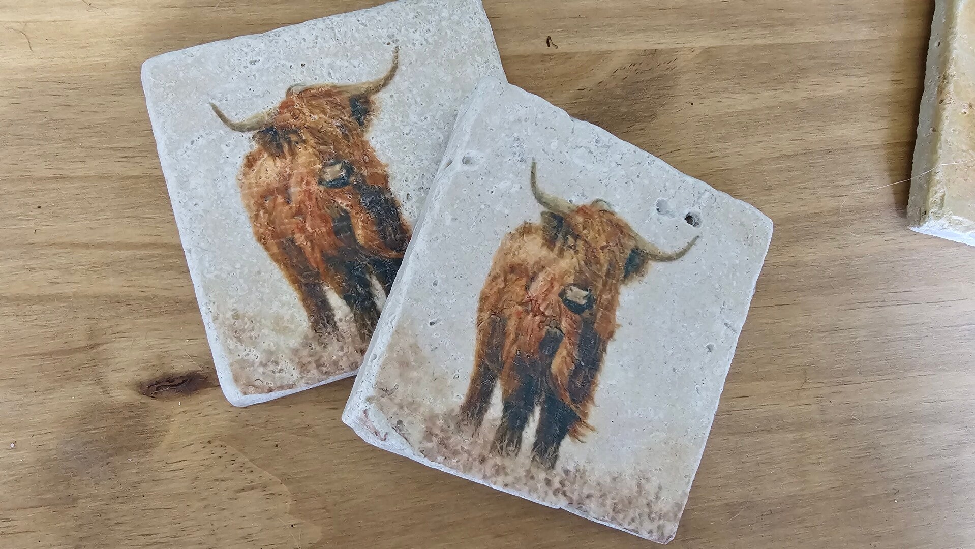 Enhance the aesthetics of your home decor with our handcrafted 'Stone Coasters Highland Cow' design. Made from premium quality stone, these coasters are durable and perfect for everyday use. Each coaster has a unique Highland Cow design, handcrafted with precision to provide a touch of elegance to your living space.