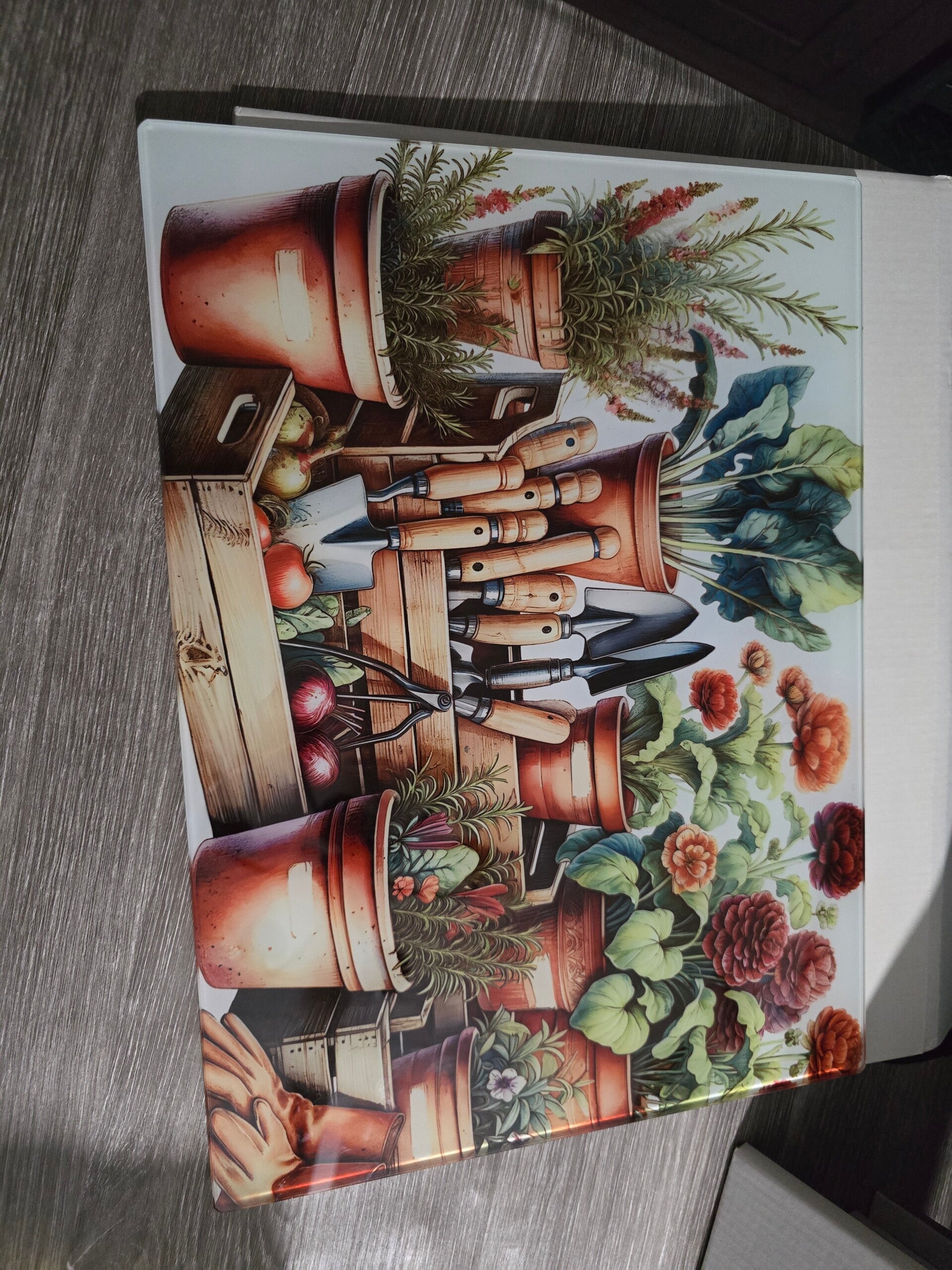 Beautiful large a3 size tempered glass worktop saver with garden design can be used in the kitchen or the potting shed hand printed, durable