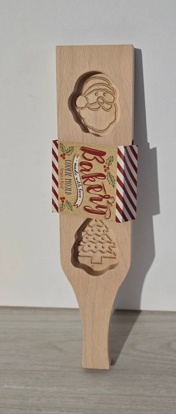 Create the perfect Christmas cookies with this wooden cookie cutter featuring two festive embossed designs. Made from 100% beechwood, this high-quality cutter is ideal for adding a touch of holiday spirit to baking. Two charming designs, Santa Face and Christmas Tree.