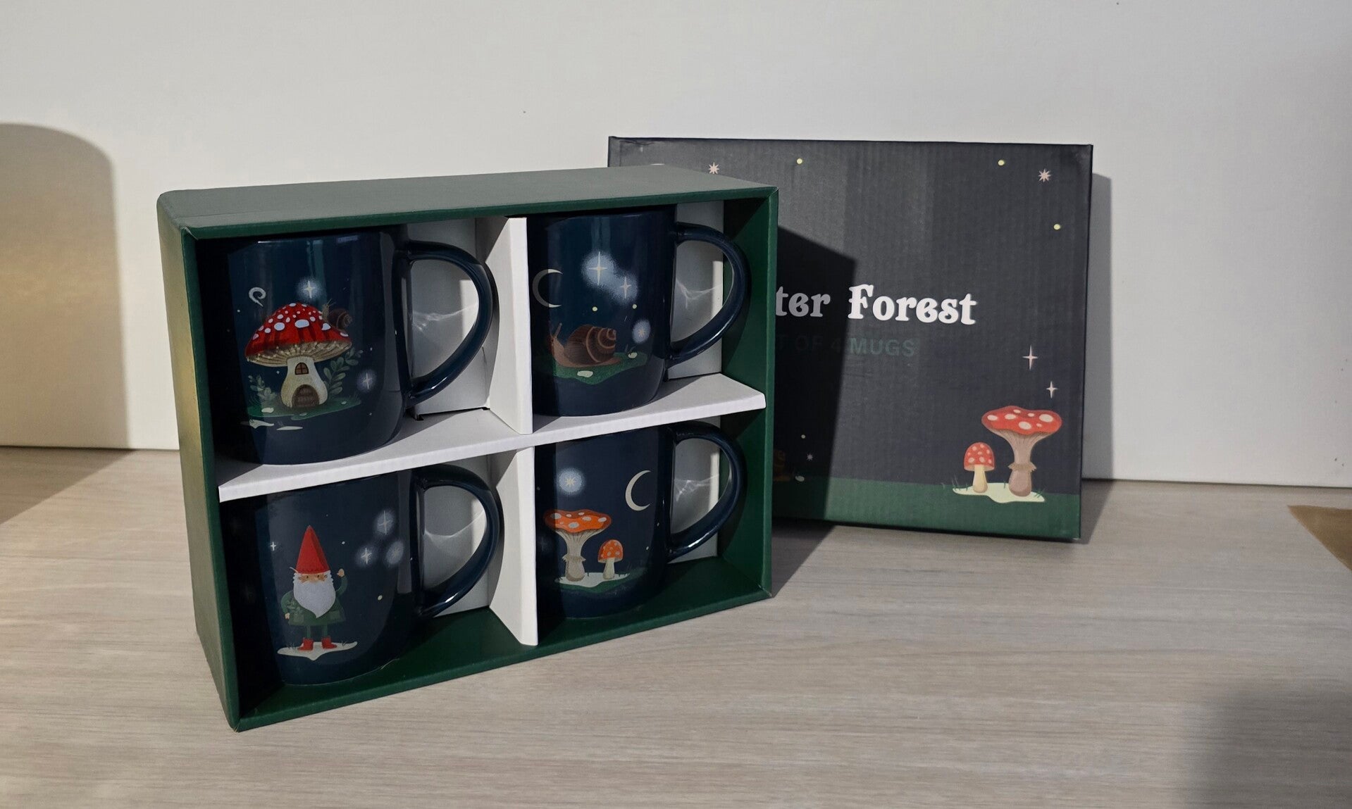 Gift boxed 4 x christmas gnome mugs fantastic christmas gift winter forest 11oz mugs x 4