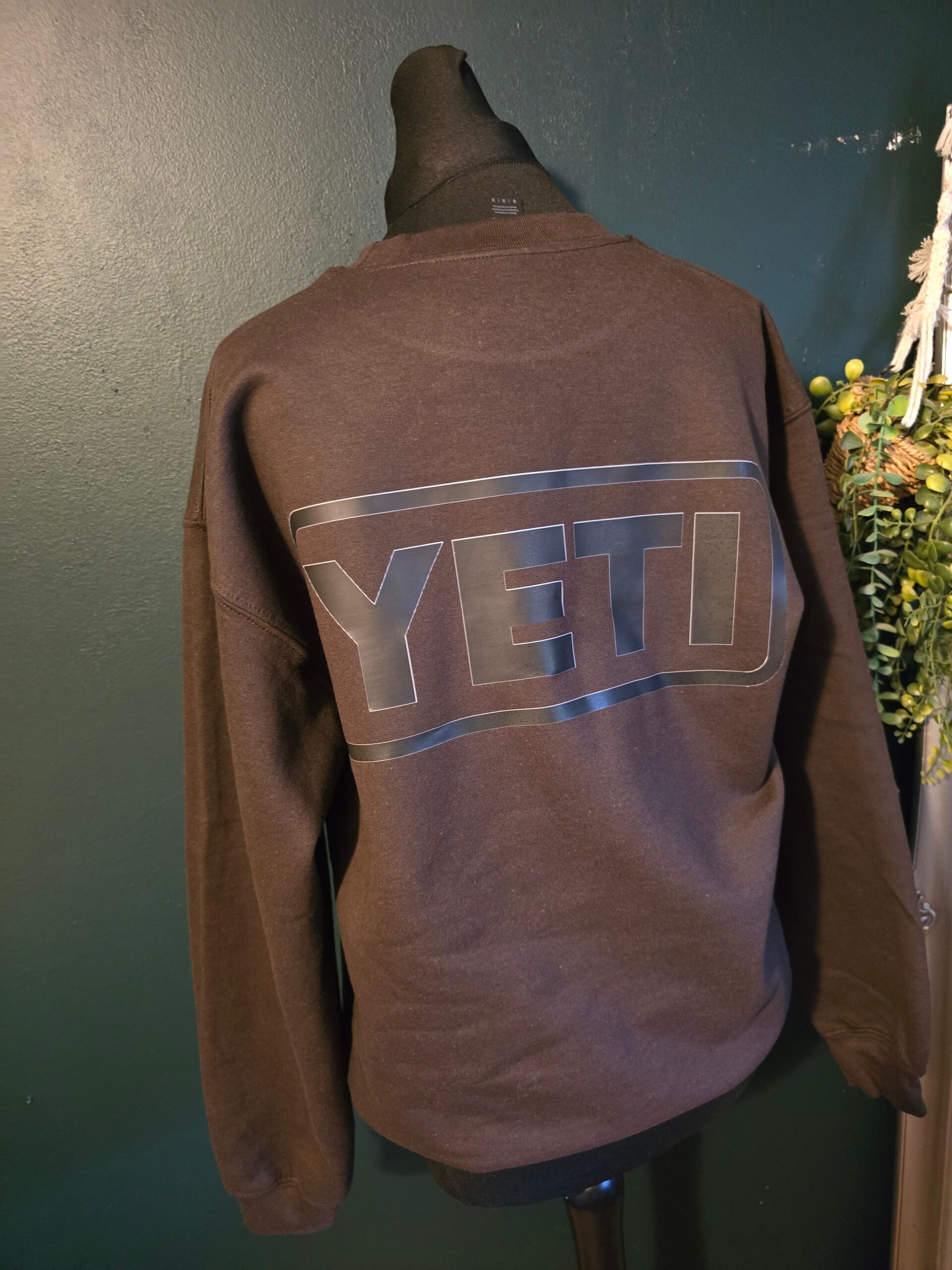 chocolate brown cozy unisex sweatshirt with yeti logo design
